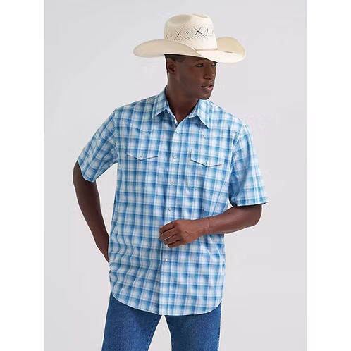 Wrangler Men’s Blue Plaid Short Sleeve Western Shirt 112374834