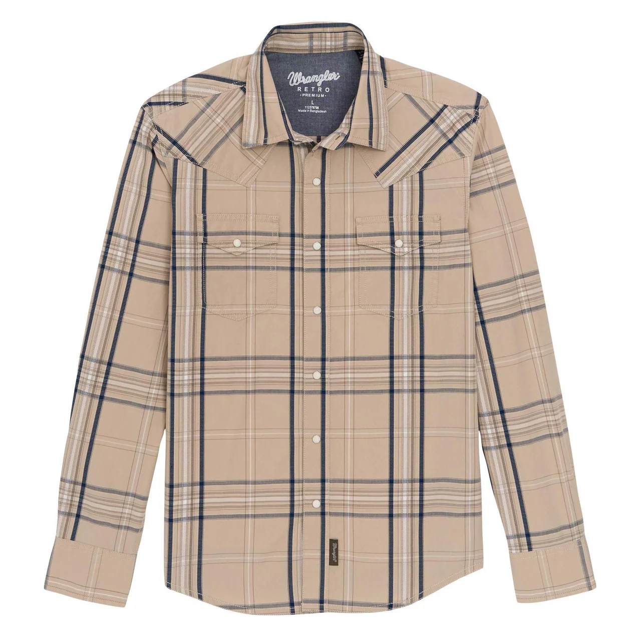 Wrangler® Men’s Retro Premium Western Shirt – Tan Plaid 112378798