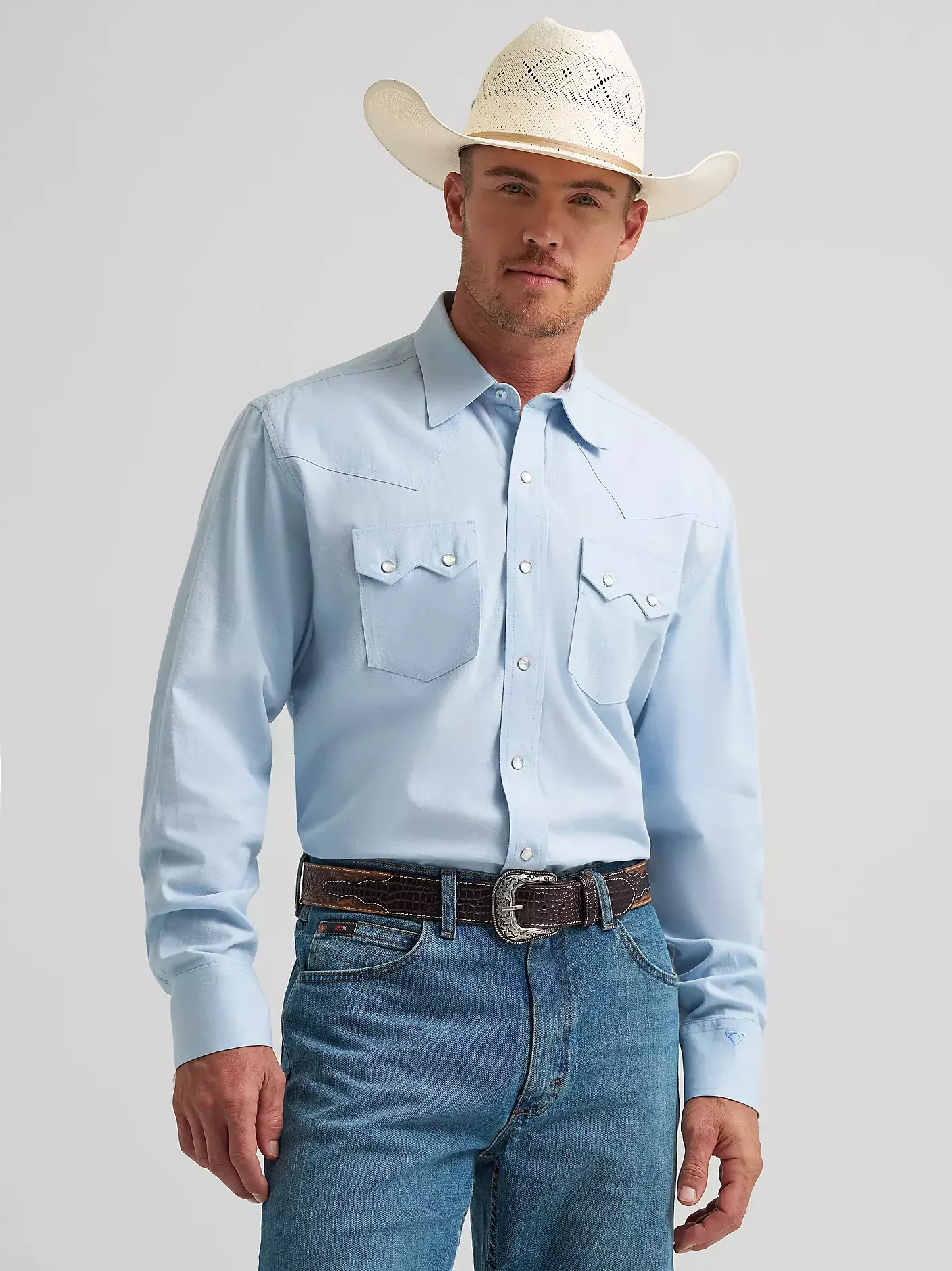 Men’s Wrangler® Logo Long Sleeve Western Snap Shirt 112379236