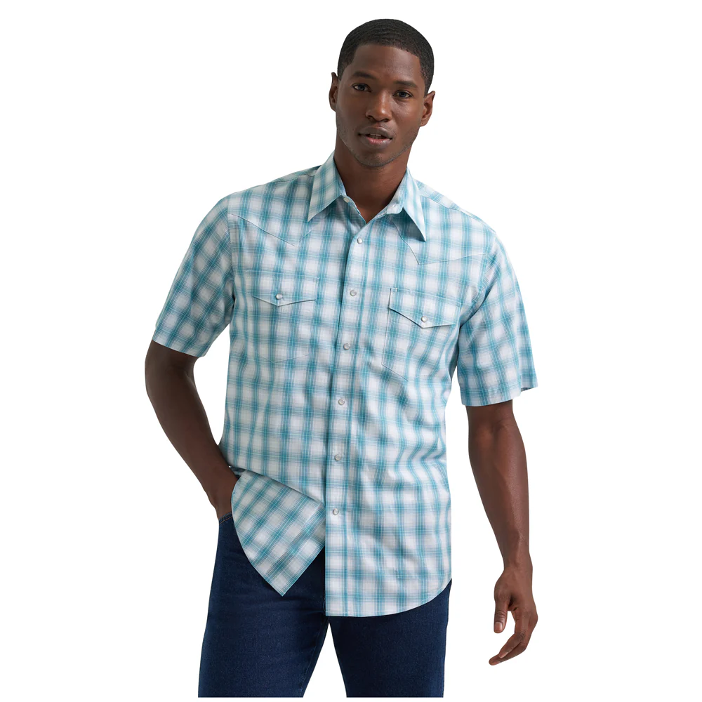 Men’s Wrinkle Resist Short Sleeve Snap Shirt – Pale Teal 112379029