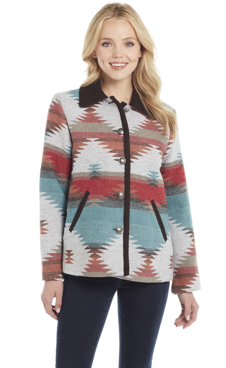 Navajo Blanket Coat Accented With Contrast Trimmings & Metal Buttons CR15549