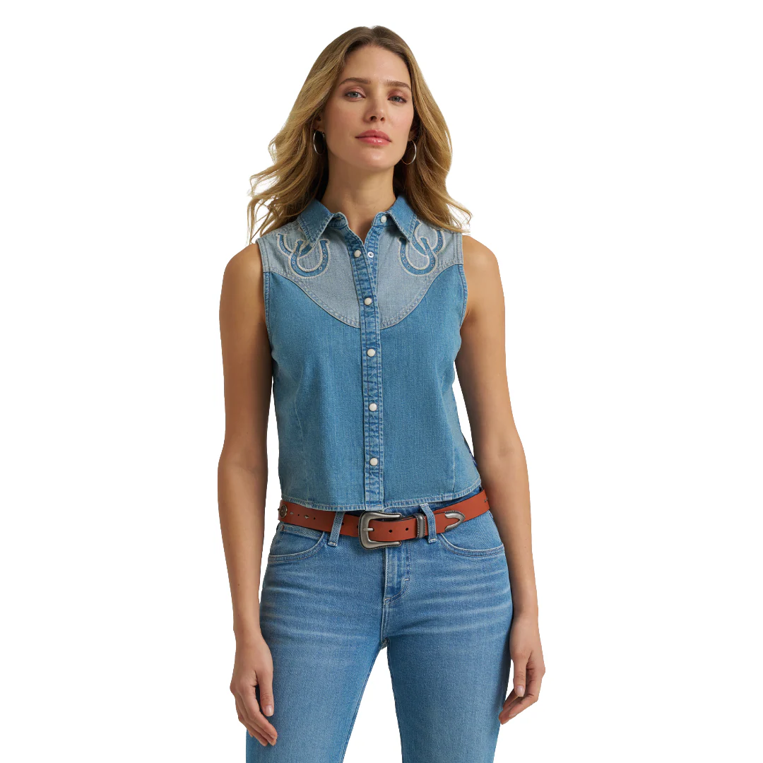 Women’s Retro® Punchy Sleeveless Denim Snap Shirt – 112379492