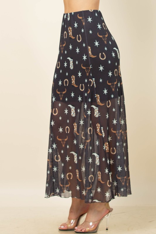 Western Elements Print Lined Maxi Mesh Skirt – AS1300-DEMI