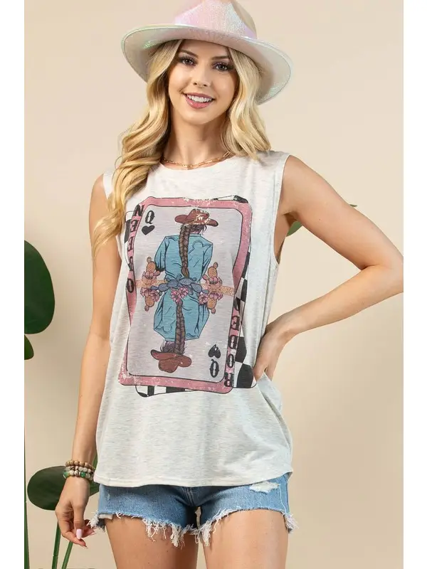 Western Cowgirl Queen Graphic Sleeveless Top – AV079-RACHEL
