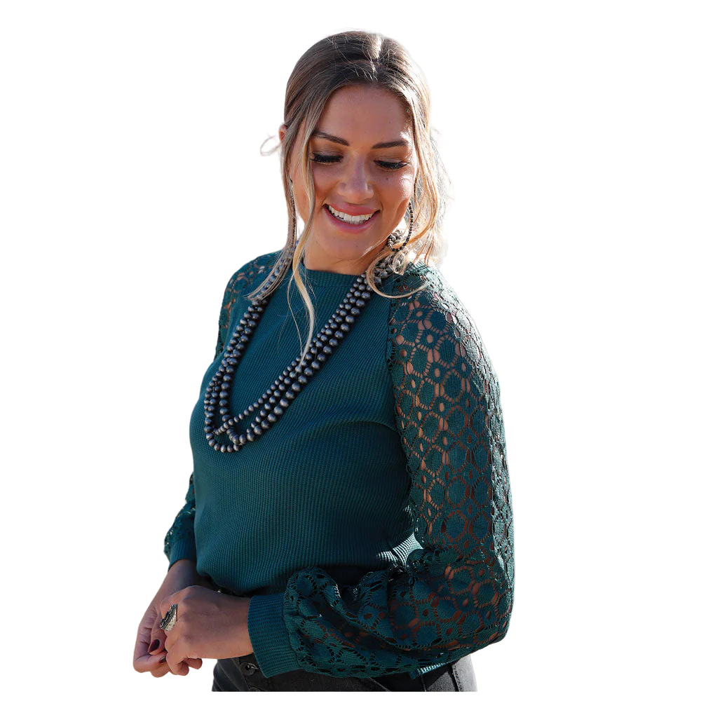 Cruel Girl Women’s Knit Top with Crocheted Sleeves – CTK7493003