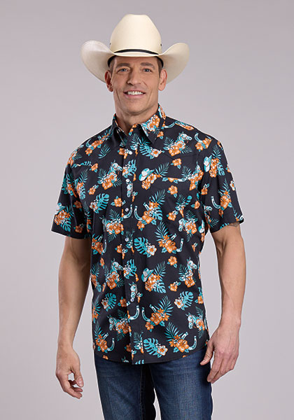 MENS S/S SHIRT -SNAP HAWAIIAN PRINT, 03-002-0064-0329